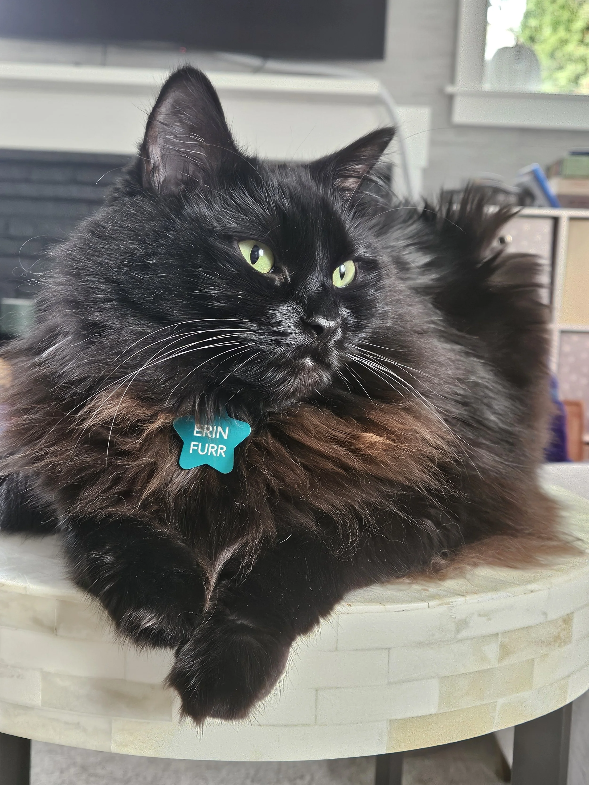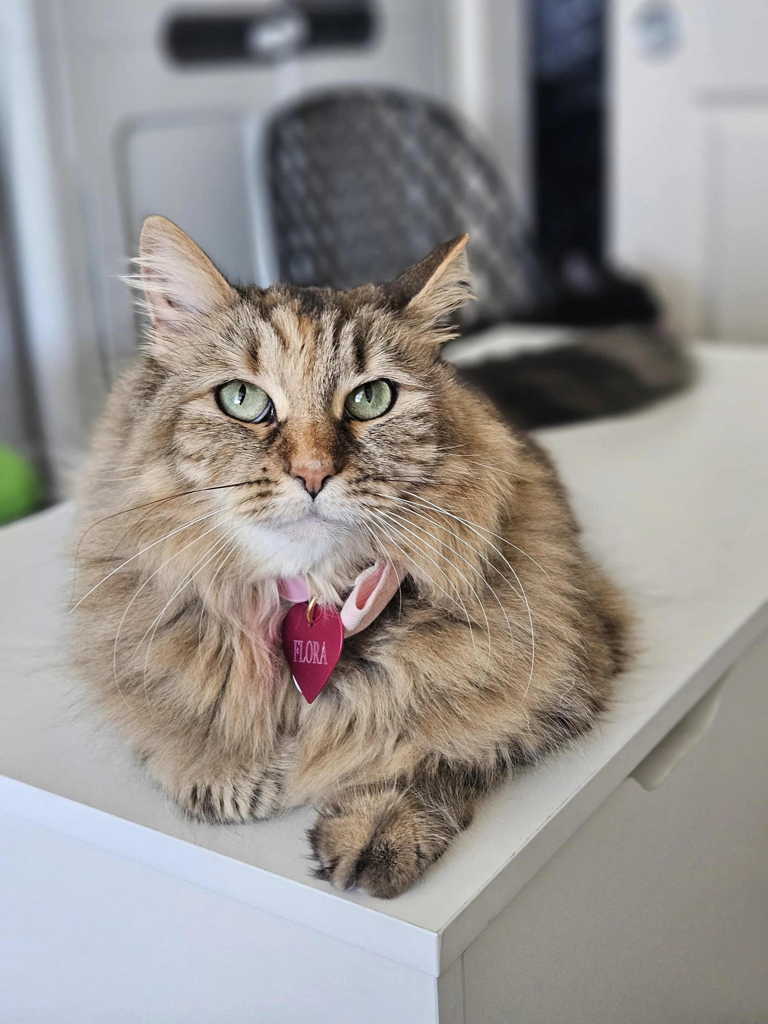 I have two fluffy cats, Flora and Erin, my furry babies and home studio assistants.