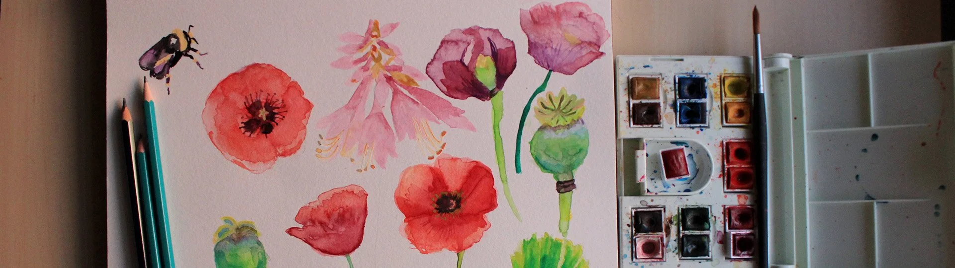 Acrylics, gouache, watercolor, colored pencils, and alcohol markers are my favorites. I love adding accents of bold color and small details that create moments of fantasy-dreamlike elements that contrast with realism. I then weave everything together digitally in Procreate or Photoshop, layering in even more magic.